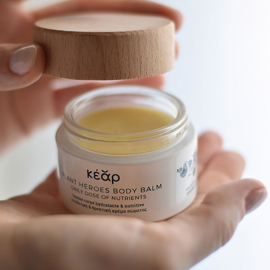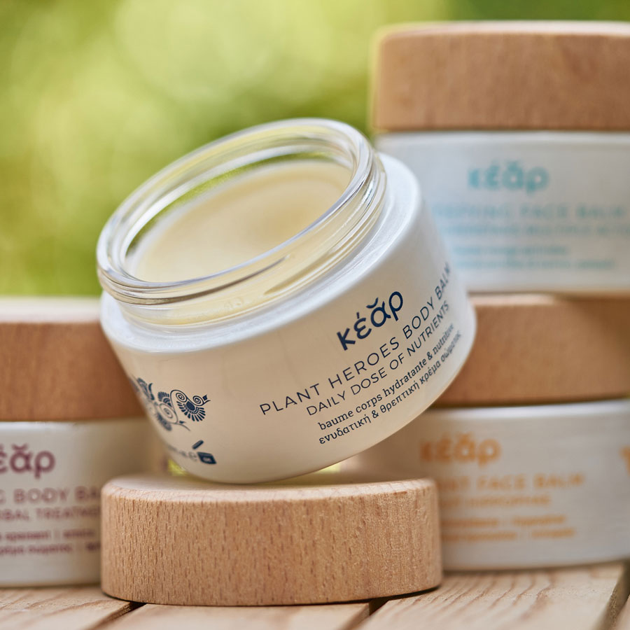 Elegant and sustainable, Plant Heroes comes in a recyclable glass jar inspired by ancient Greek patterns. Just a pea-sized amount is enough; 50 ml equals the effectiveness of a 250ml water-based cream.